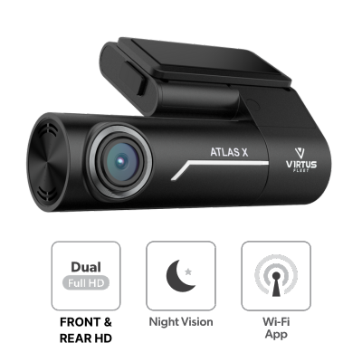The built-in G-sensor detects sudden movements or impacts and marks the current video clip as an event making it easy to locate, which is crucial in case of accidents or incidents. The Virtus Fleet Atlas X dashcam, connects to your smartphone or tablet/iPad via Wi-Fi allowing you to control the camera settings, access recorded videos and view driving statistics directly from the mobile app.